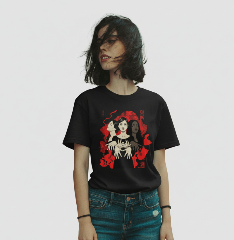 Tecnologia de Impressão: Utilizamos a técnica DTG (Direct-to-Garment), um processo de impressão de alta resolução que injeta tinta diretamente no tecido. Este método garante que as estampas retenham a vivacidade das cores e a integridade dos detalhes, resistindo a múltiplas lavagens sem craquelar ou desbotar prematuramente.